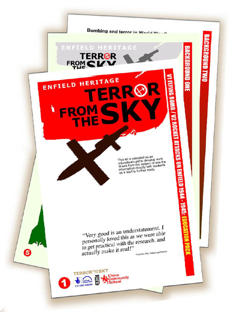 The Enfield ‘Terror from the Sky’project developed an education pack related to the V1 and V2 bombing. Made up of twenty pages that include a wealth of background information as well as listings, maps, photos and examples of Enfield incidents. The kit contains a list of further sources of information as well as lesson ideas. Schools can develop work from the information or use pages directly with students as an aid to further study. Its’ goal is to help enrich students connection with their local community as well as give a direct local link to a significant and historic worldwide event. It may also support reflection on modern conflicts and assist generating new cross curriculum opportunities for learning.